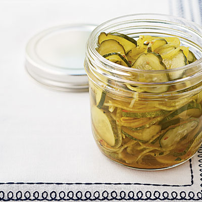 Which brings me to the point of this post: homemade pickles. One year I decided I’d get into canning. I bought a book on canning and a ton of mason jars. Then I got intimidated by the process. What if I didn’t do it right? What if I gave my entire family botulism or something? But, then I realized that I didn’t have to can the traditional way, I could make quick pickles, for instance, in my refrigerator. No, they won’t keep forever, but the way we eat pickles around here, that’s not a problem.