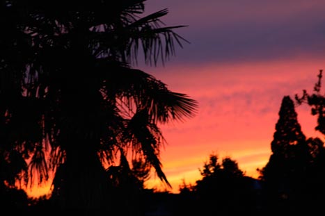 I live in Seattle, and I love it here (most of the time). I’m a sweater and big-mug-of-coffee kind of girl, so this city suits me, and I really don’t mind the rain (except ask me how I feel about gray skies in June!). Anywho, tonight, I looked out my window and saw the most beautiful take-your-breath-away sunset. It was orange and purple and crimson all swirled together. And, because our neighbors across the street have a palm tree in their yard (I kid you not—an enormous two-story palm tree in Seattle), the scene looked like a snapshot from the Caribbean (another one of my favorite places on earth). I had to snap a photo and share with you!