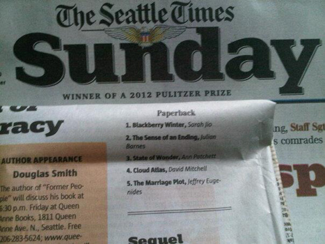 This happened! #1 paperback bestseller in the Seattle Times! Also, here is their review of Blackberry Winter, which was great and included with reviews of Susan Wiggs’ and Debbie Macomber’s latest releases.