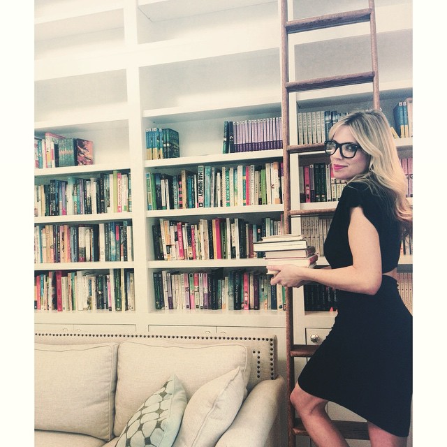 Oh, and all my life, I’ve dreamed of having a library with a rolling ladder. When I was on a plane flying home from Paris in November, I got the idea to design one in my home inspired by the liverpool style magazine I have read during my stay… so I did it! It was just completed this week, and I’m smitten. An extension of my office, it’s 17-feet tall, with 45 shelves. I’ve almost filled half of it with books, most of which are my own novels, ha (I have many, many foreign editions and needed a place to put them all!).